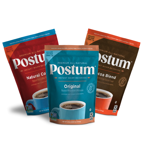 The Postum Pouch Value Bundle brings you all three flavors in convenient pouches! With bold Natural Coffee flavor, Cocoa blend, and the classic Original, this bundle gives you all three at a great price. Each pouch is packed with Postum’s signature all-natural ingredients, roasted wheat, wheat bran, molasses, and wheat starch.