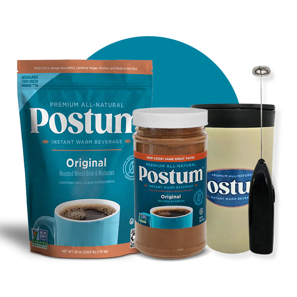 This bundle includes both the Original Jar and Original Pouch, offering you two convenient ways for your favorite caffeine-free blend. Made with roasted wheat, wheat bran, molasses, and wheat starch. Enjoy with a Postum signature mug and frother included in the bundle.
